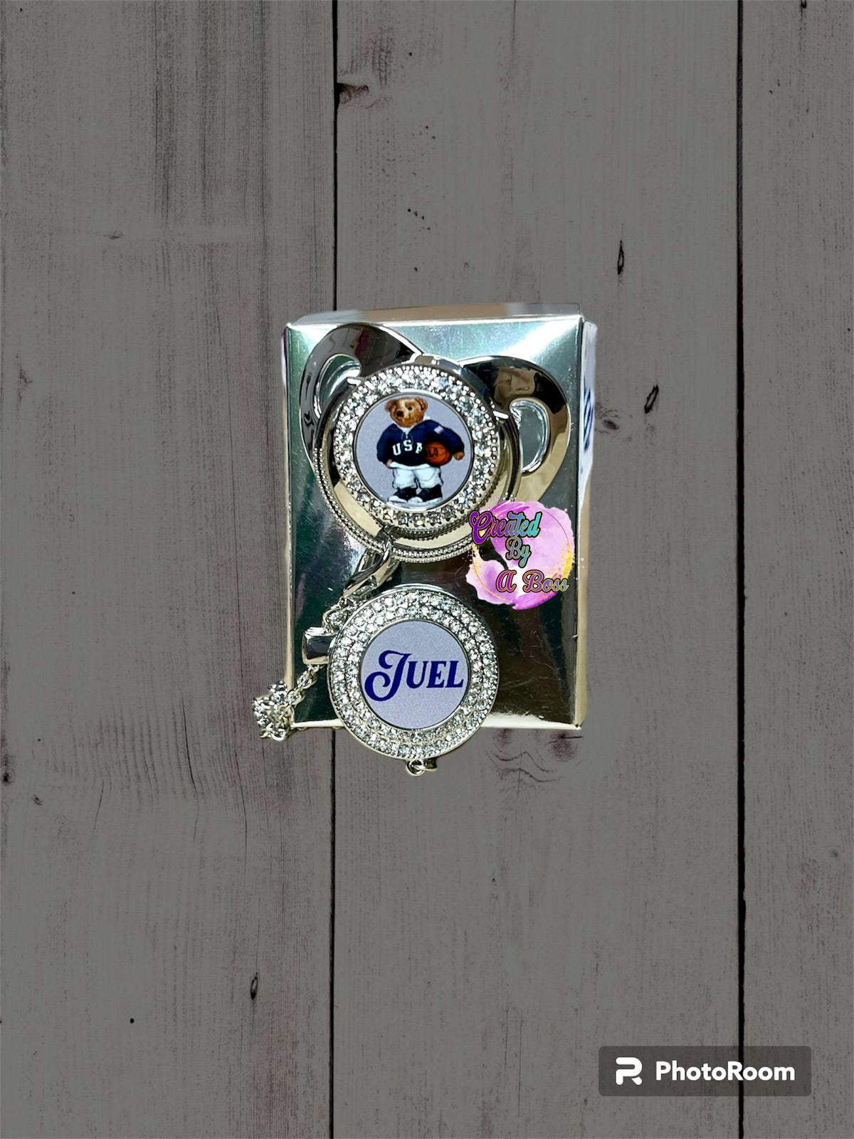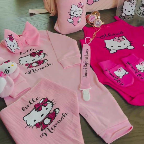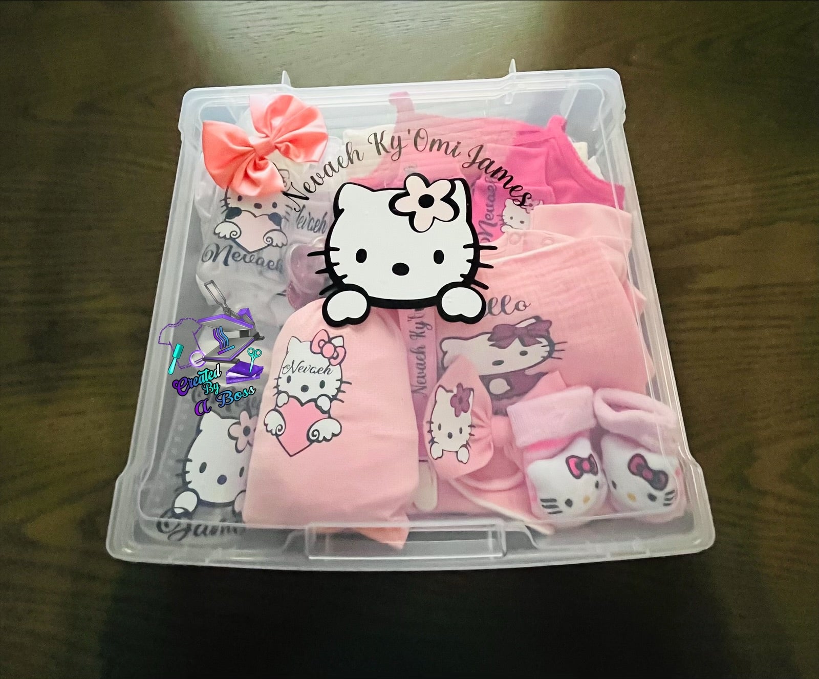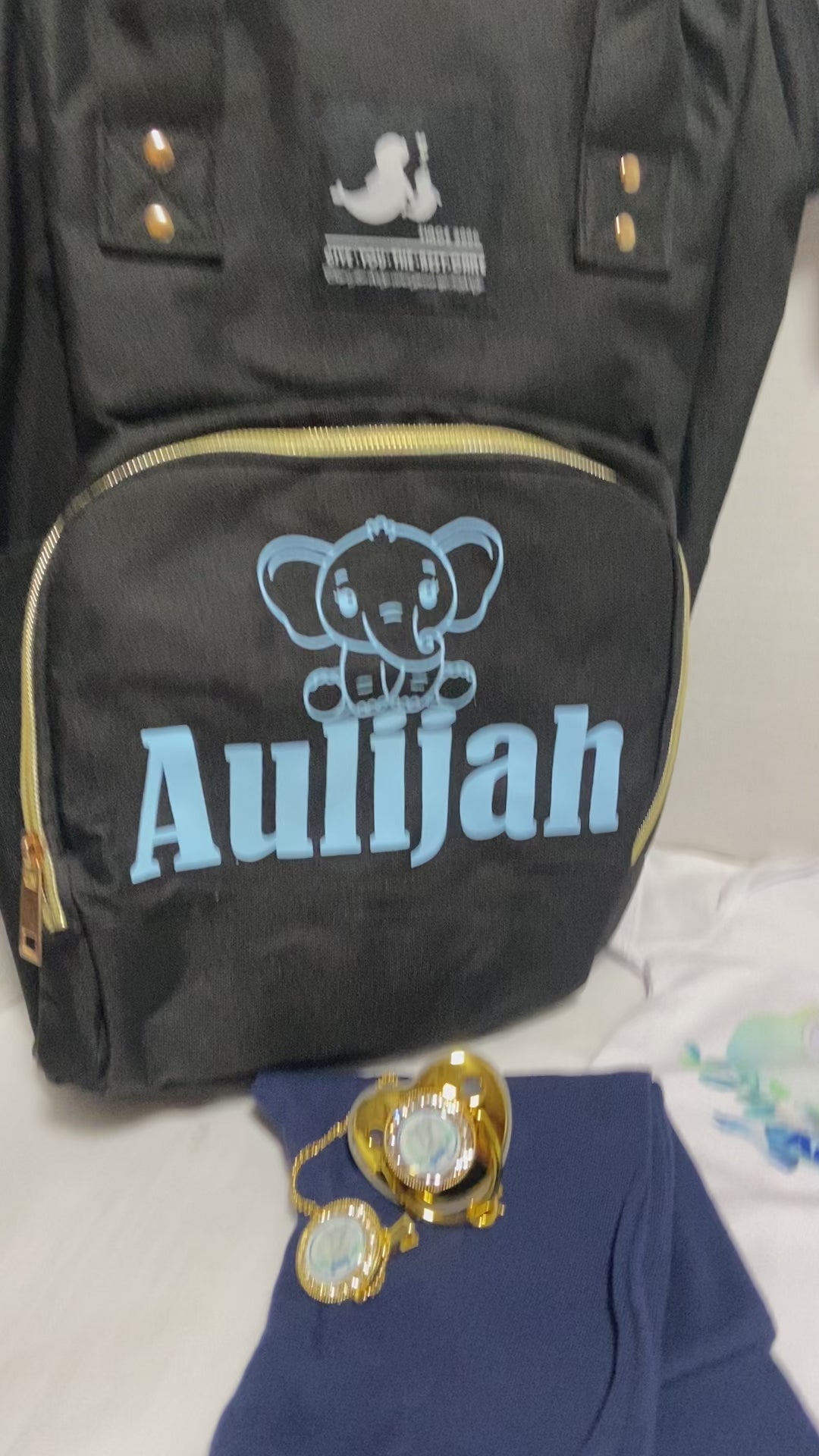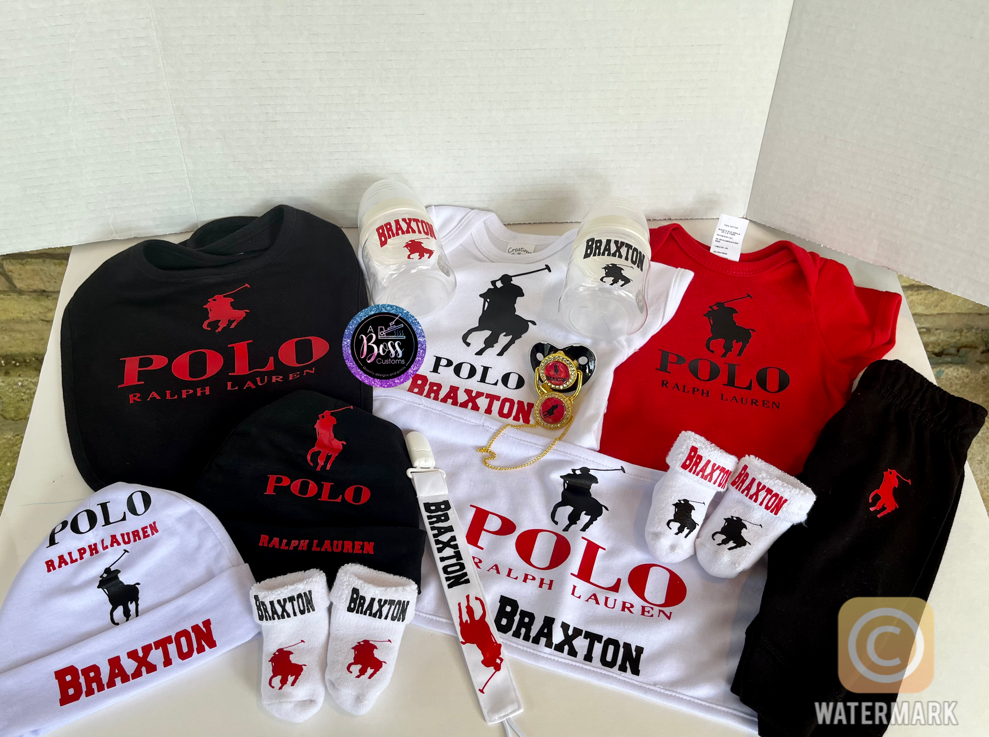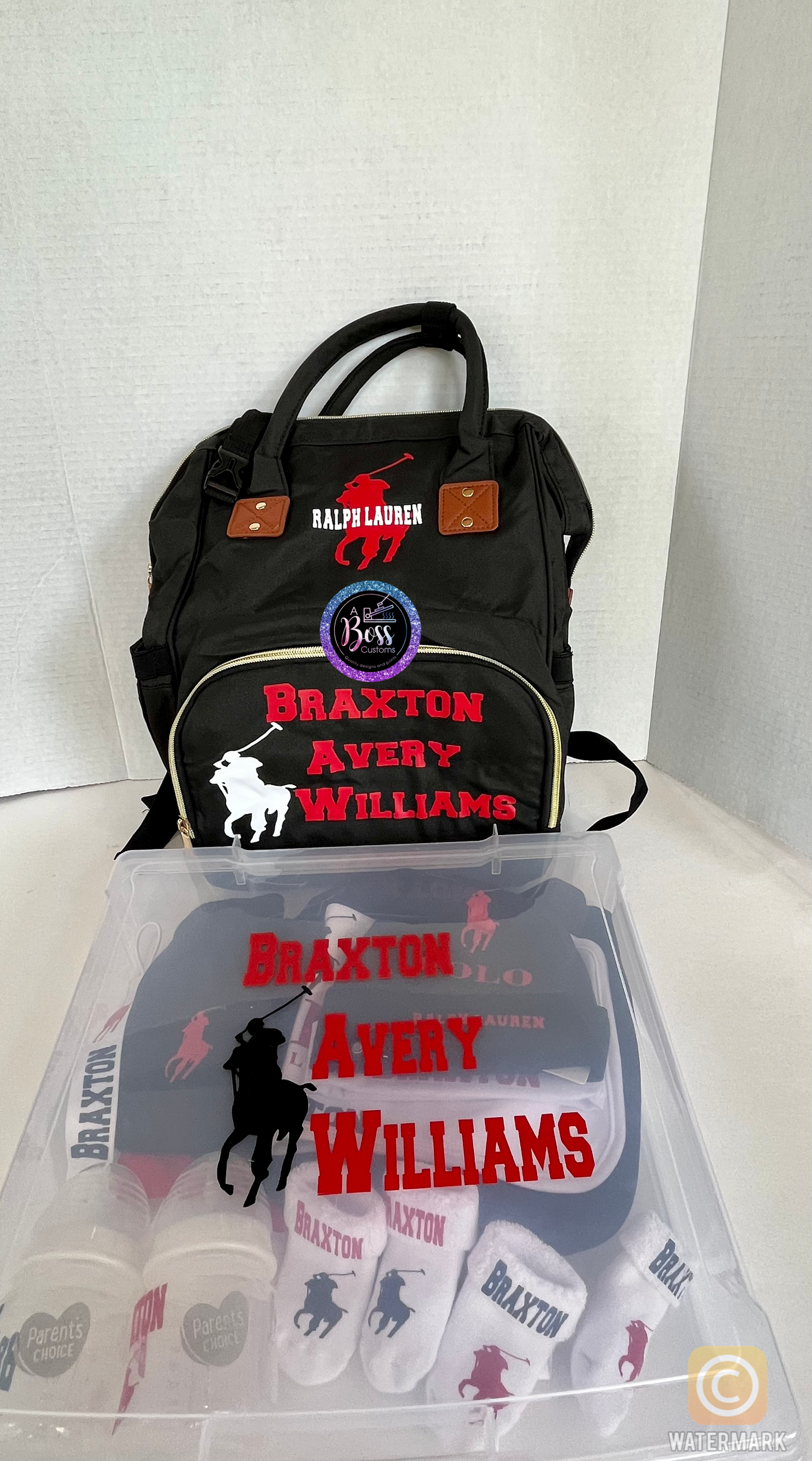 Personalized baby items. Sizes are typically 0-3 month unless specified otherwise. Items are designed with htv vinyl, sublimation, and or transfer images. Any color or design. All packages come with clear mini bottles. Sublimation bottles are an additional fee.
