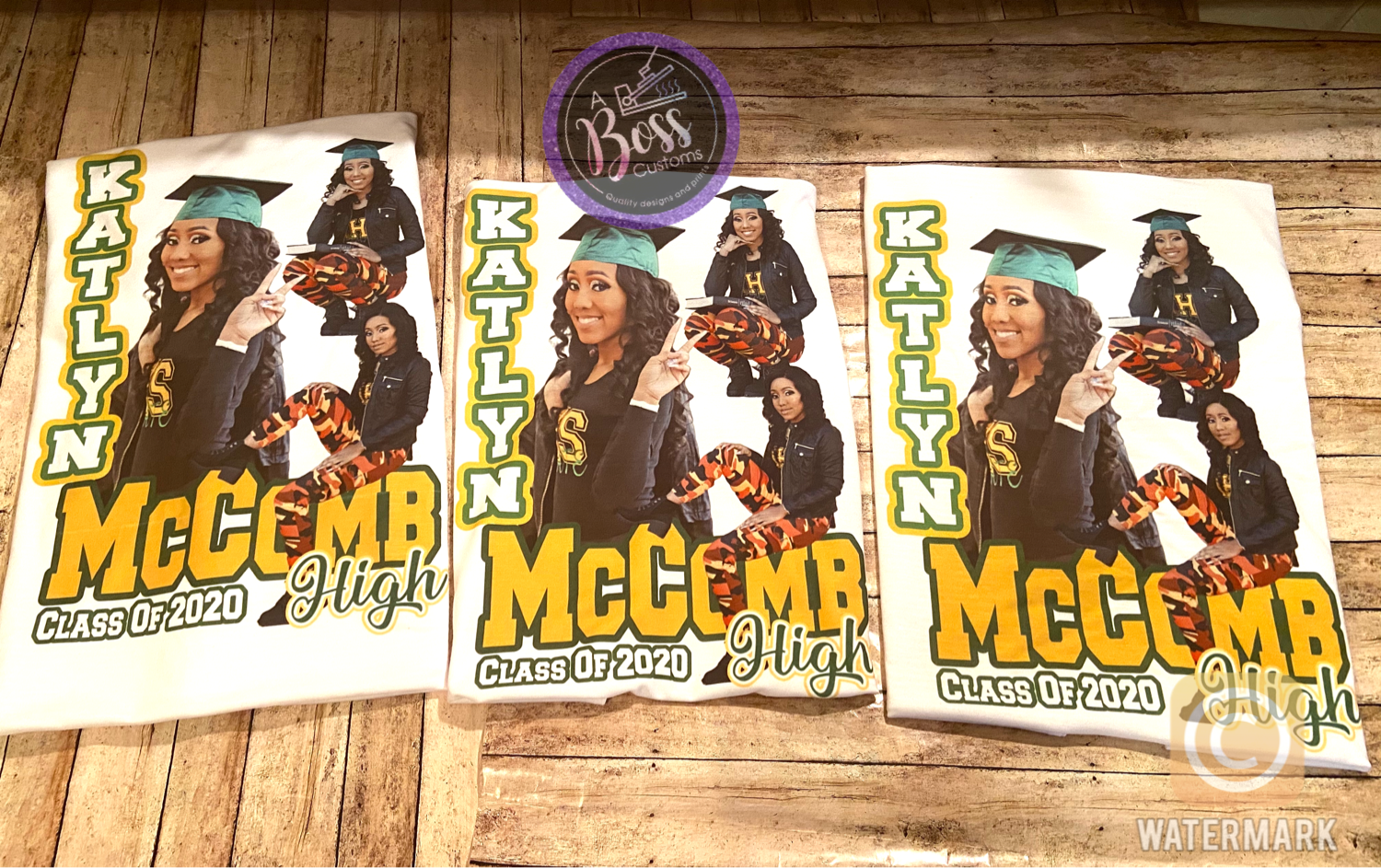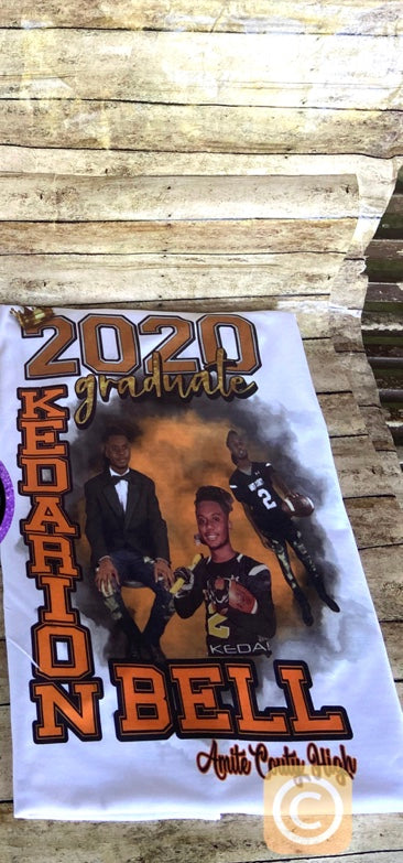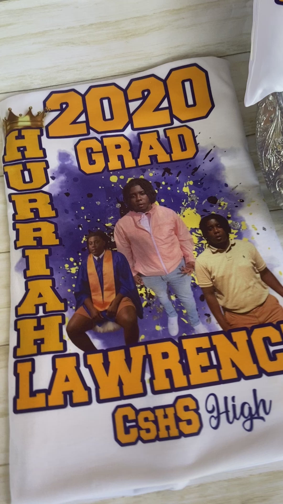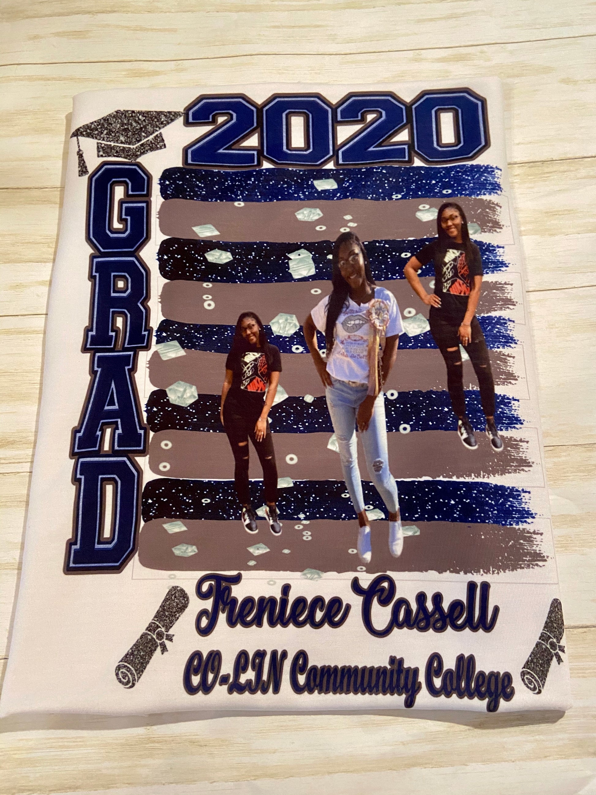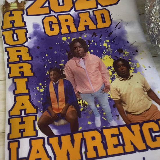 Custom sublimation grad shirt. Any design 1-4 good quality pictures preferably full body is required to create these designs. Sublimation works best on white or light colored shirts. No refunds. Limited color shirts are available. All sales are final.