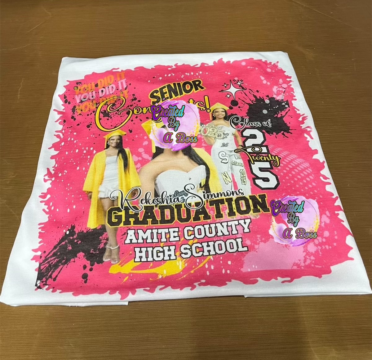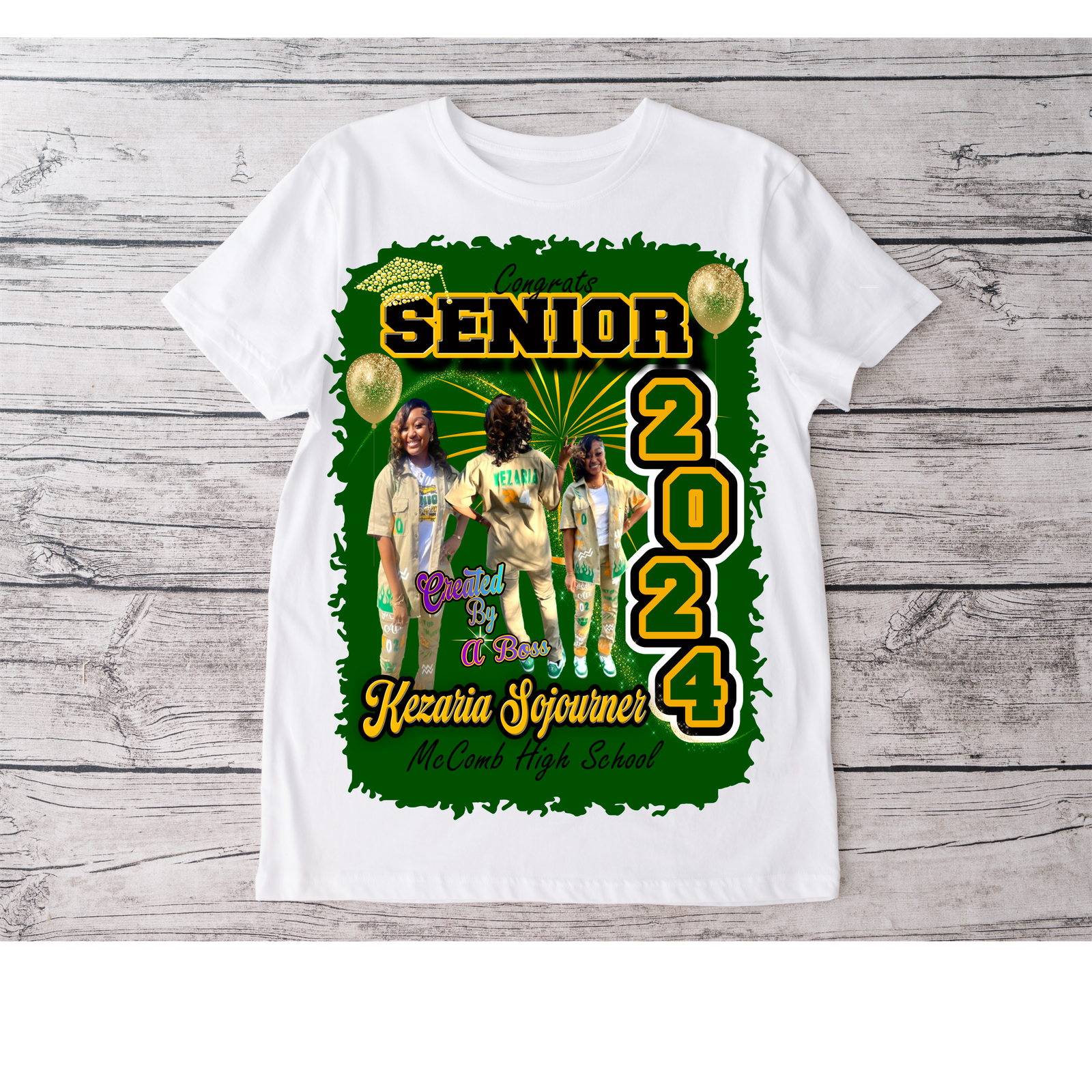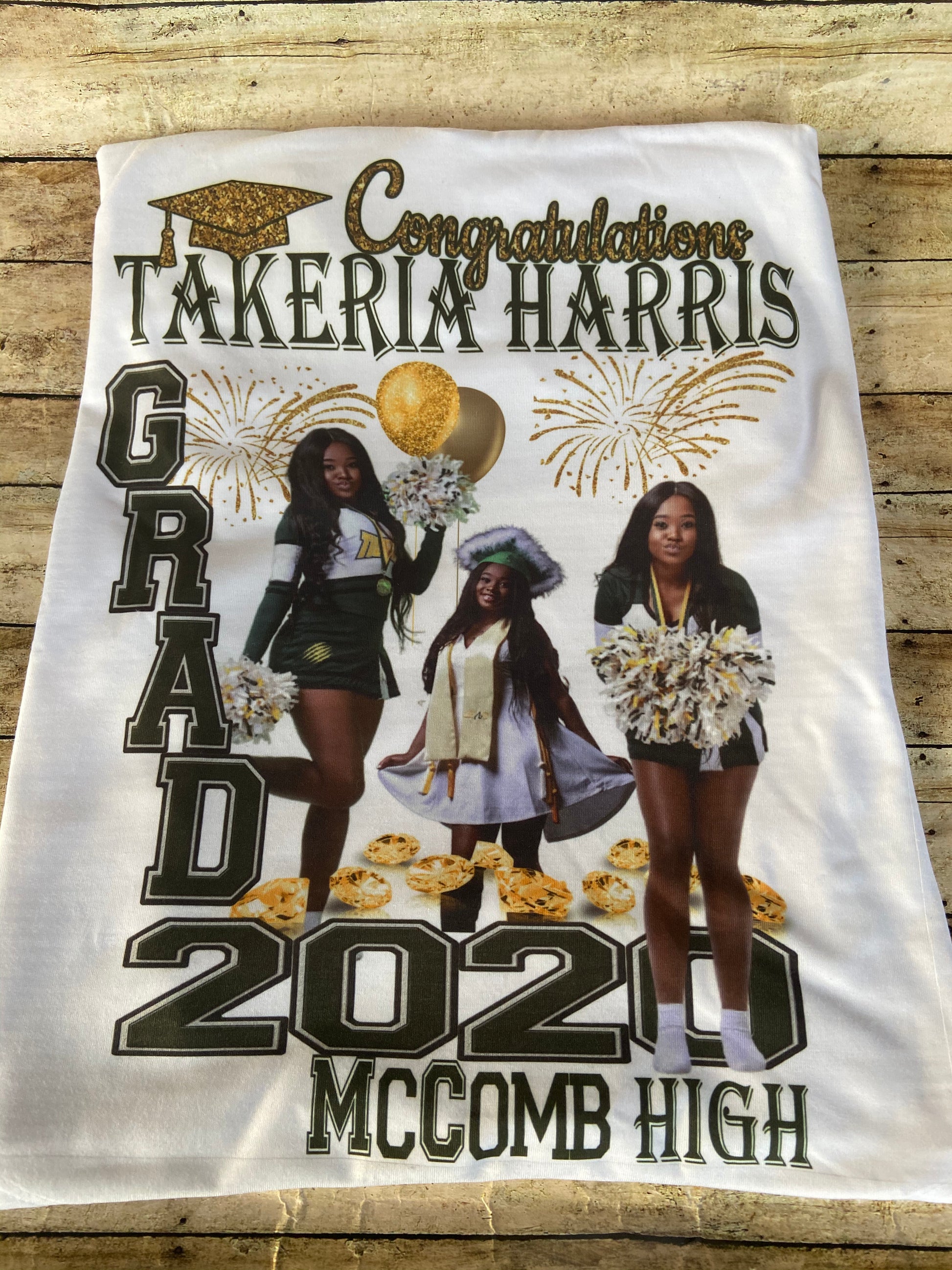 Custom sublimation grad shirt. Any design 1-4 good quality pictures preferably full body is required to create these designs. Sublimation works best on white or light colored shirts. No refunds. Limited color shirts are available. All sales are final.