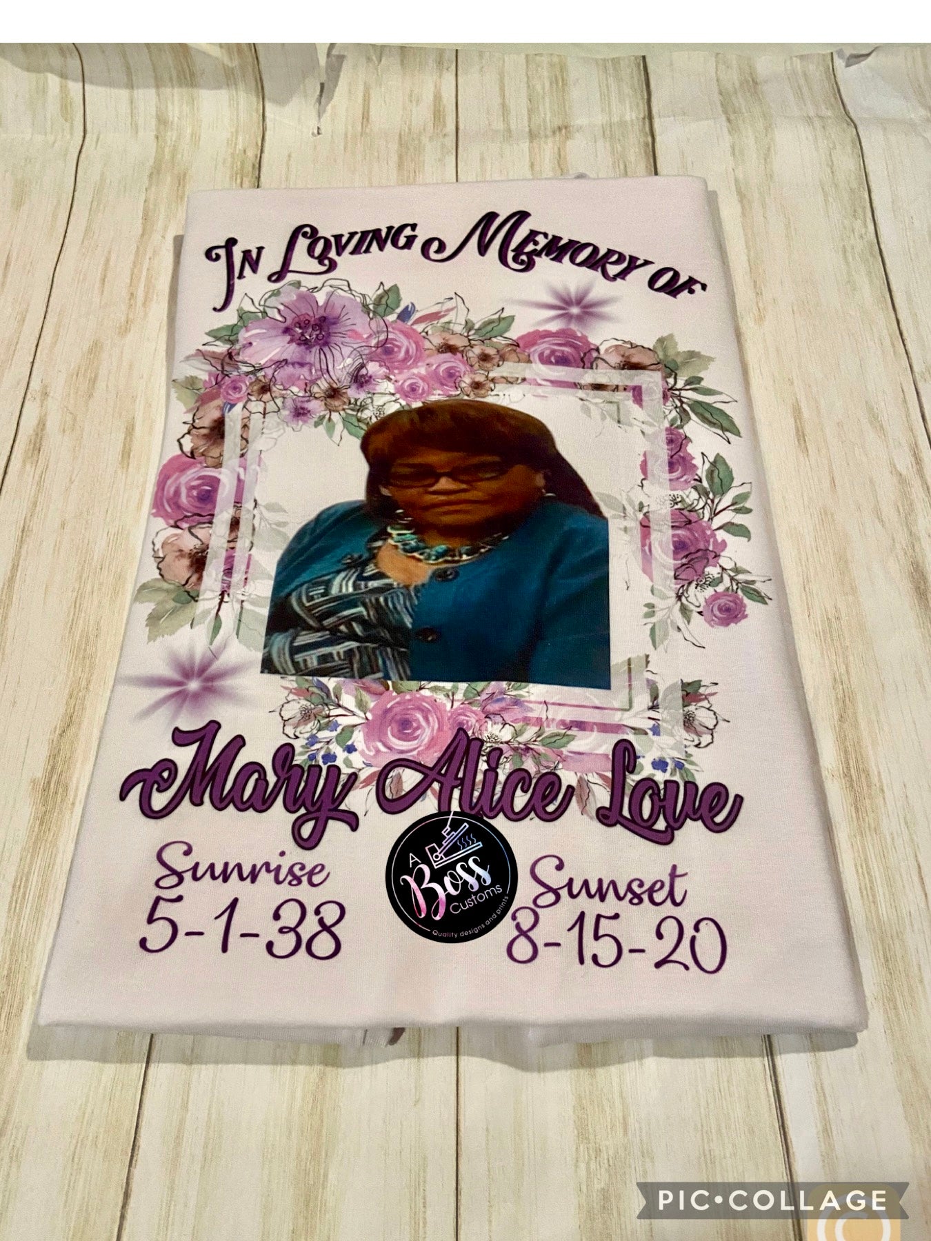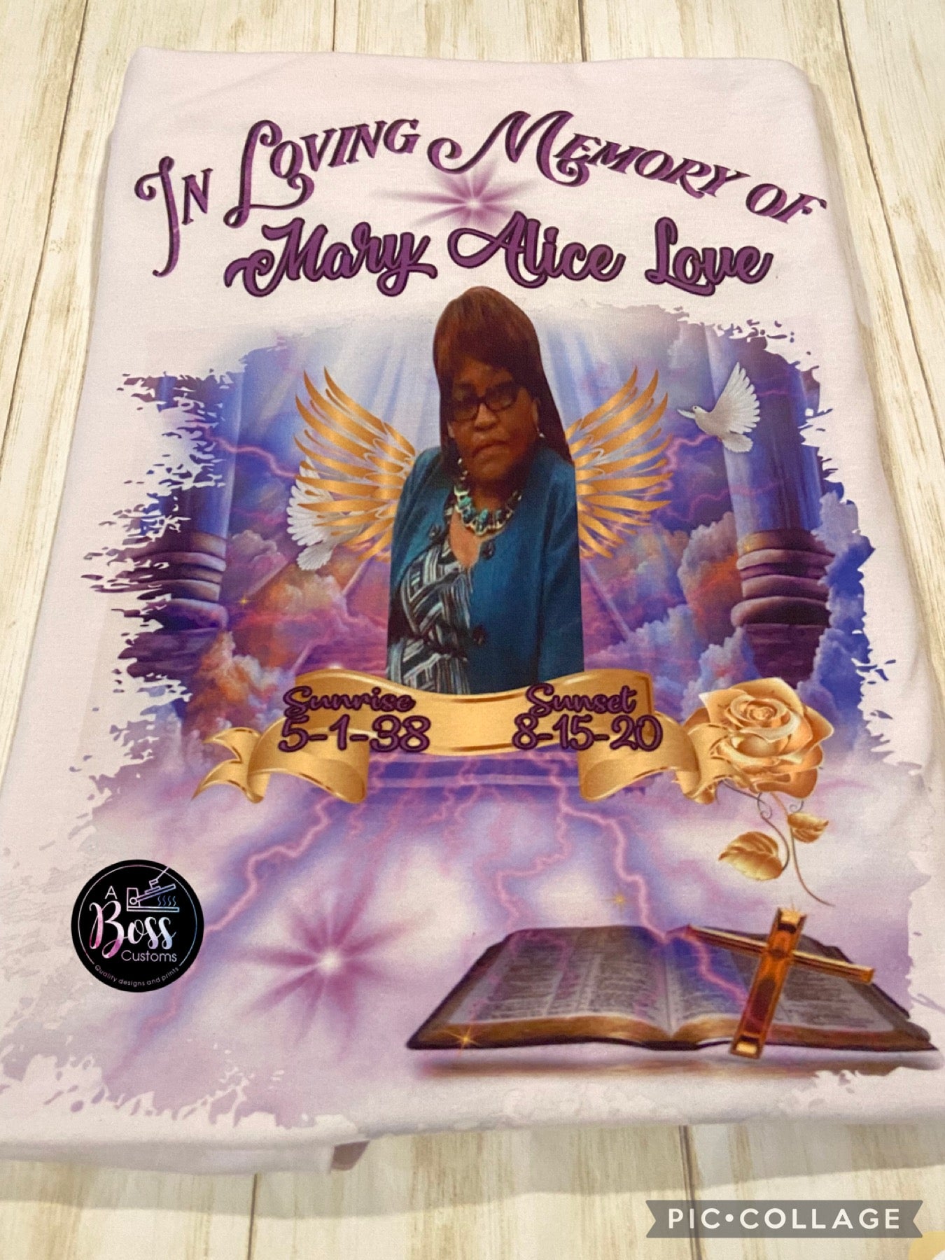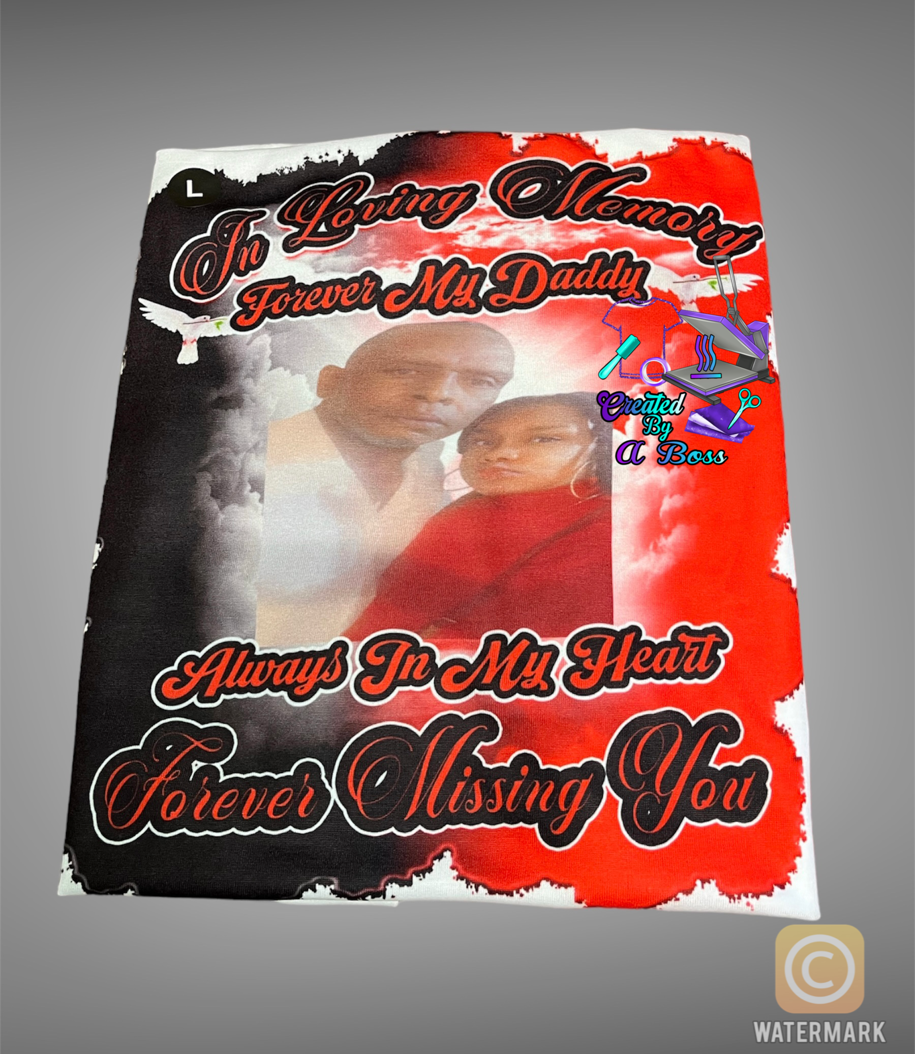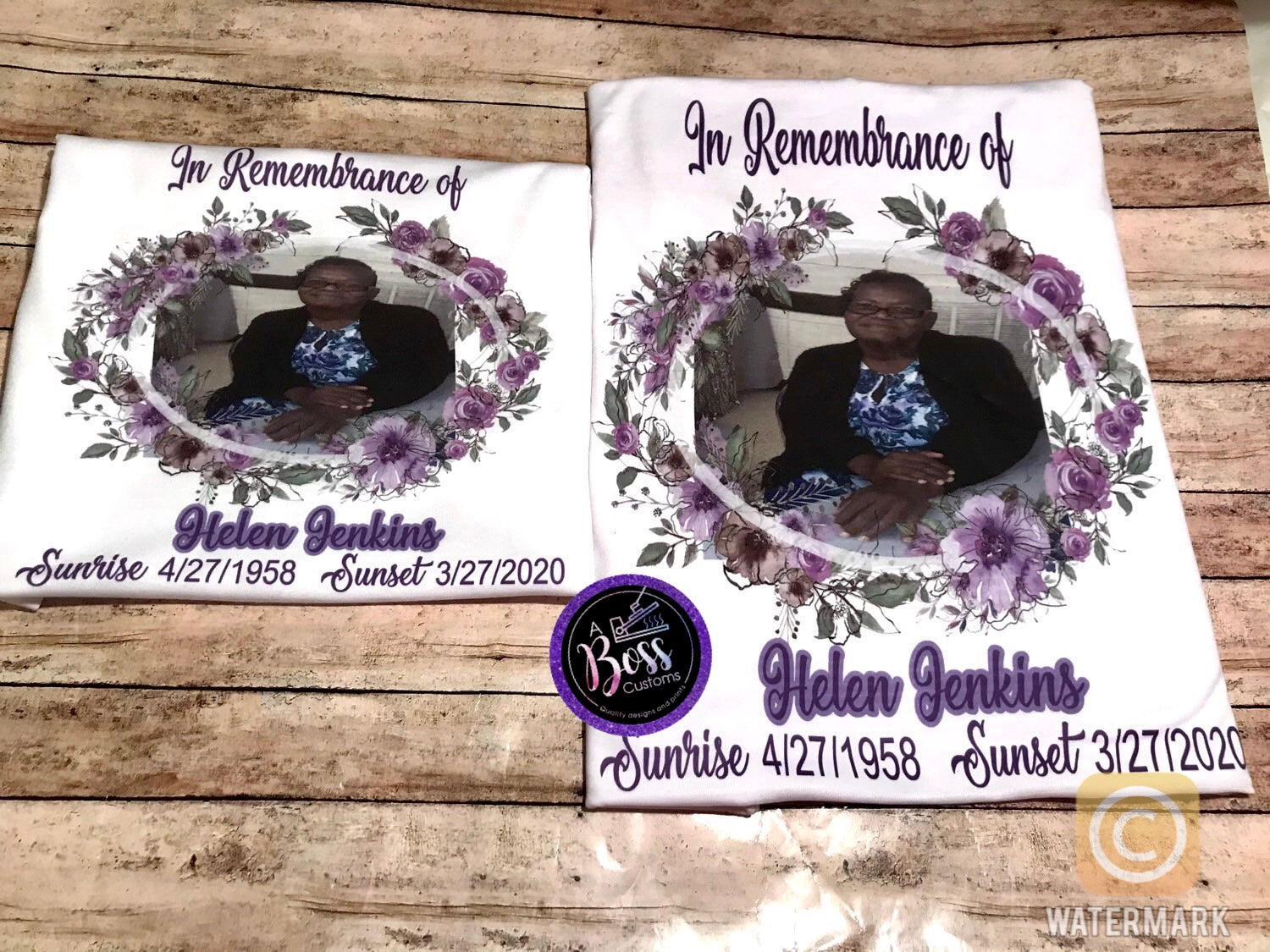 Memorial shirts can be customize with any design or color. Sublimation designs work best on white or light colored shirts. Good quality pictures are preferred for the best results. No refunds or exchanges. All sales are final.