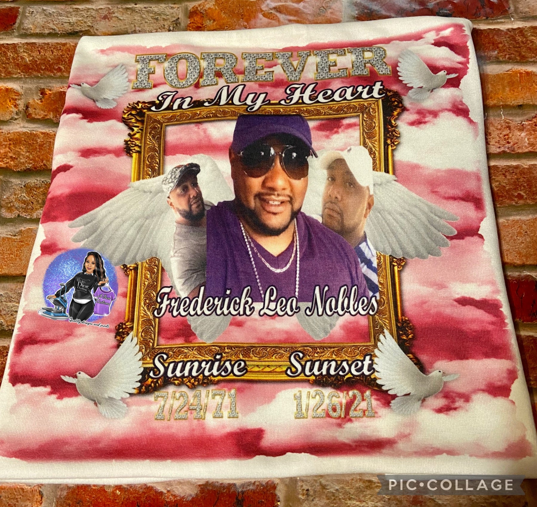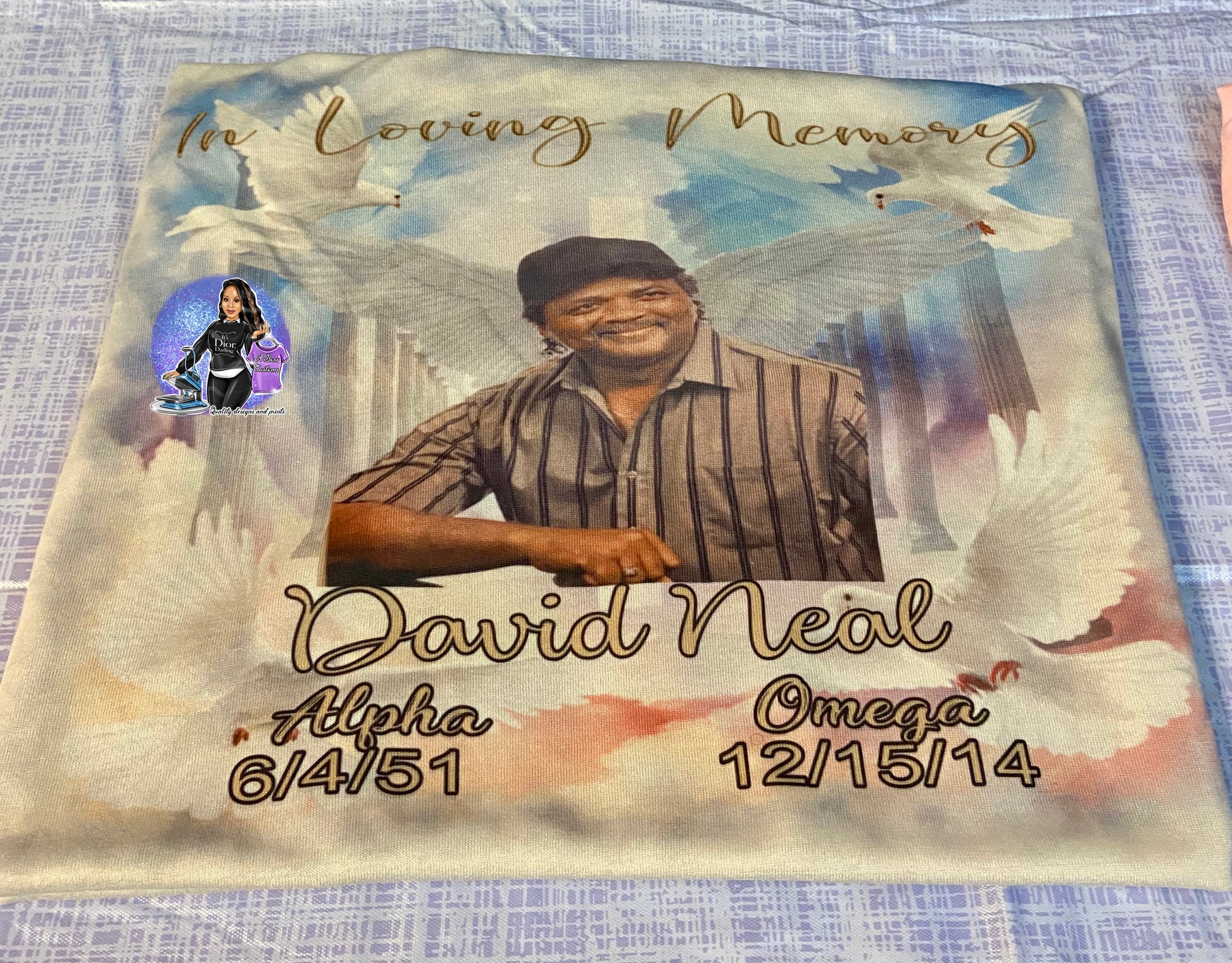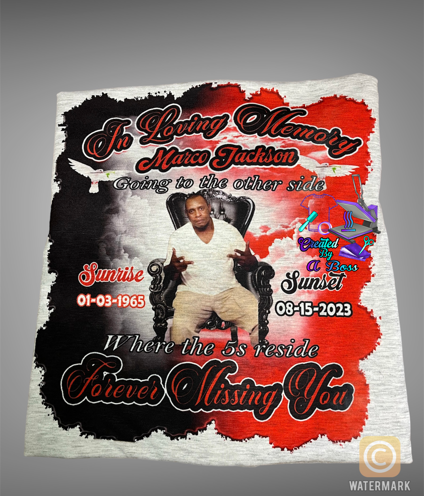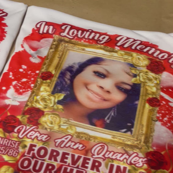 Memorial shirts can be customize with any design or color. Sublimation designs work best on white or light colored shirts. Good quality pictures are preferred for the best results. No refunds or exchanges. All sales are final.