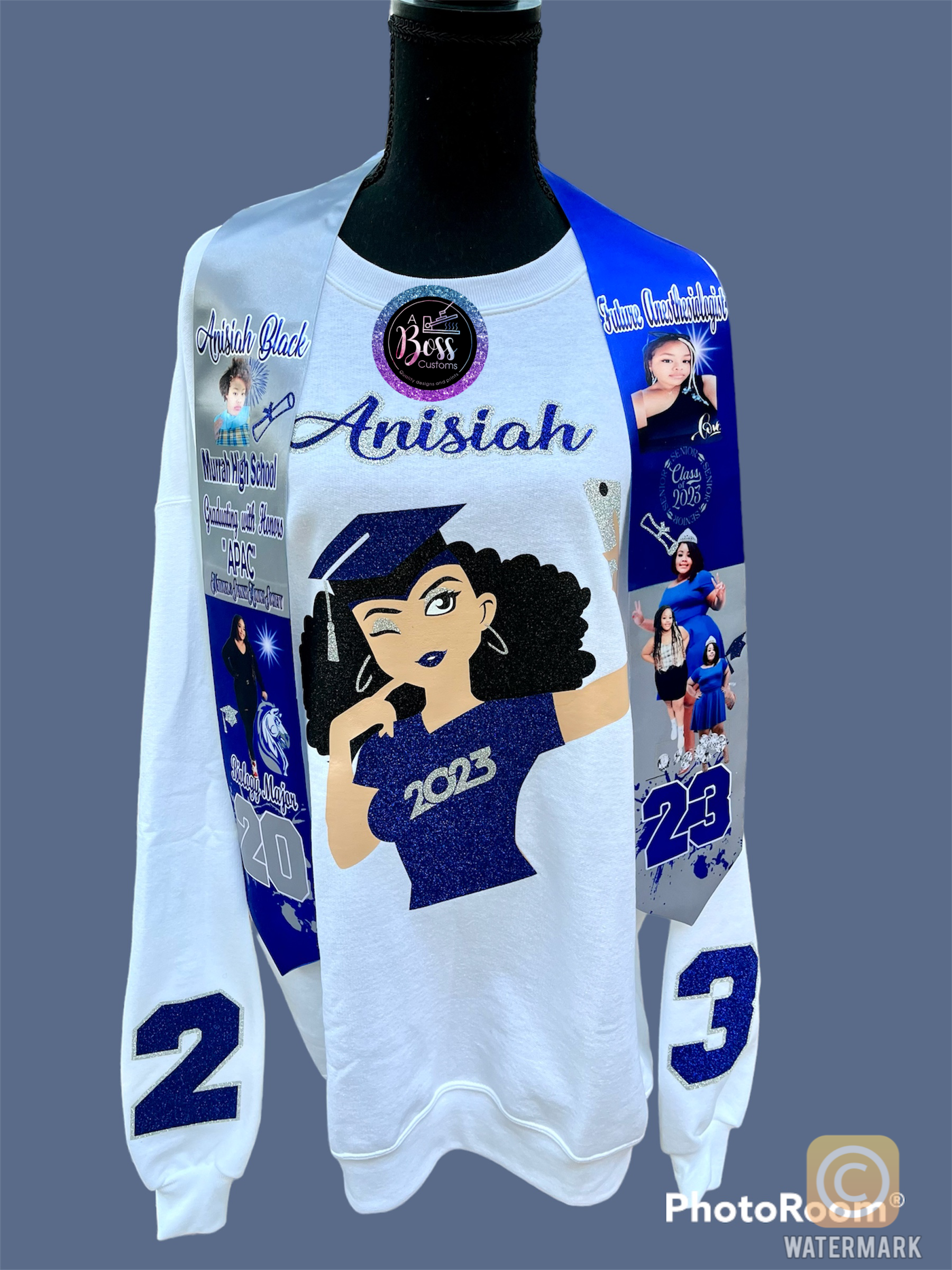 Custom sweatshirt only. No skirts or stoles included. Sweatshirts are designed with htv vinyl and or transfer image(s). Any design and colors. Sweatshirts are unisex. This is for front or back design only. Sleeves are an additional price All sales are final. No refunds or exchanges.