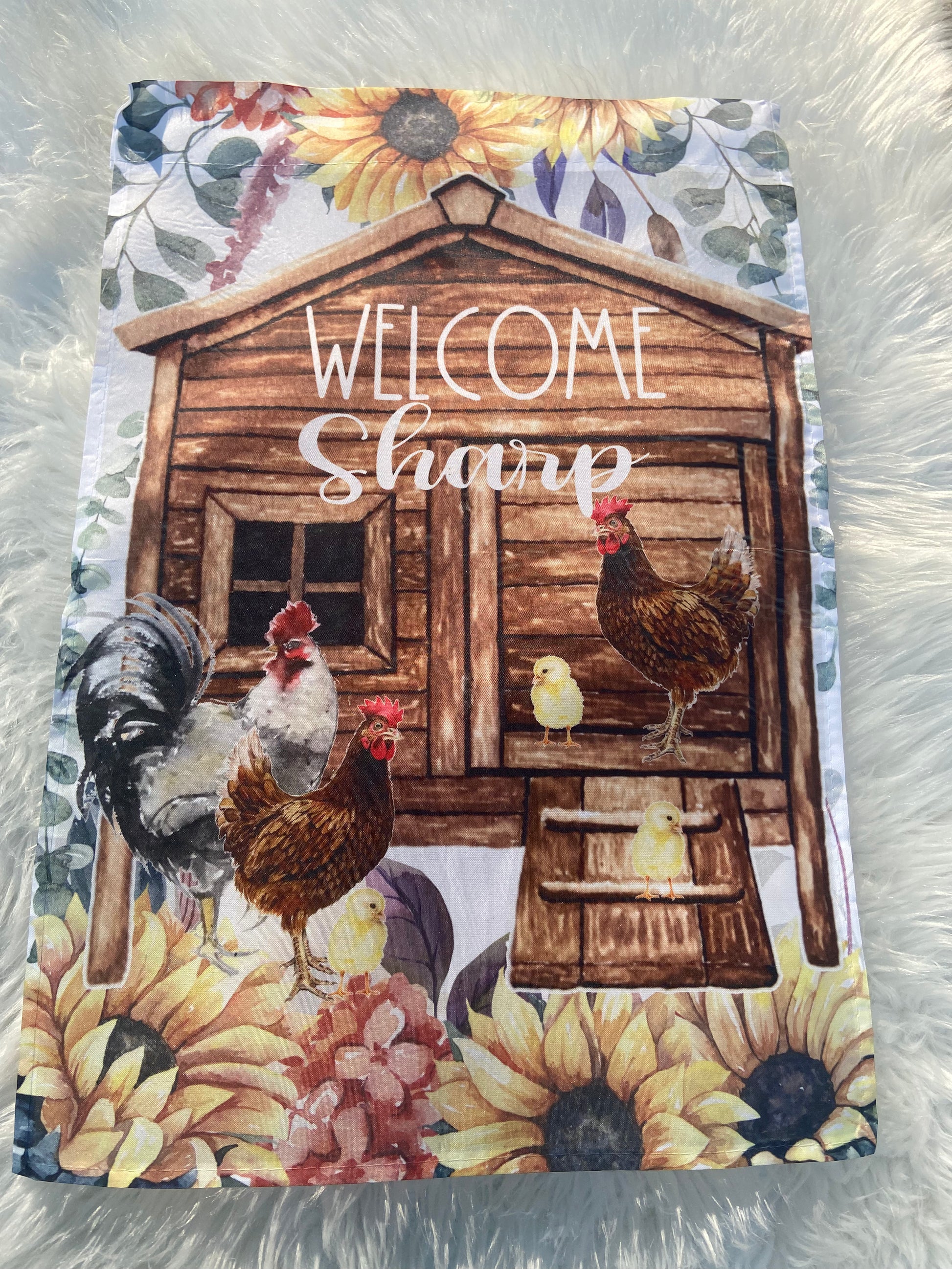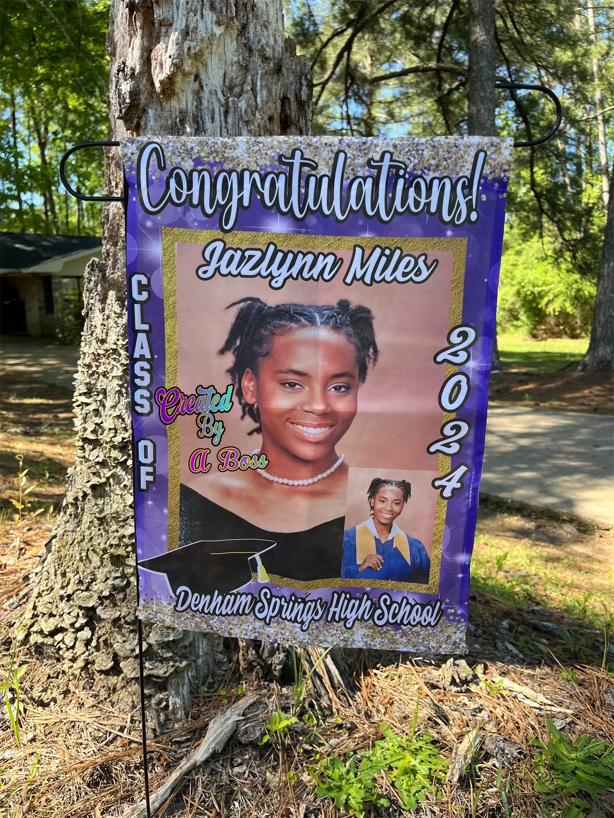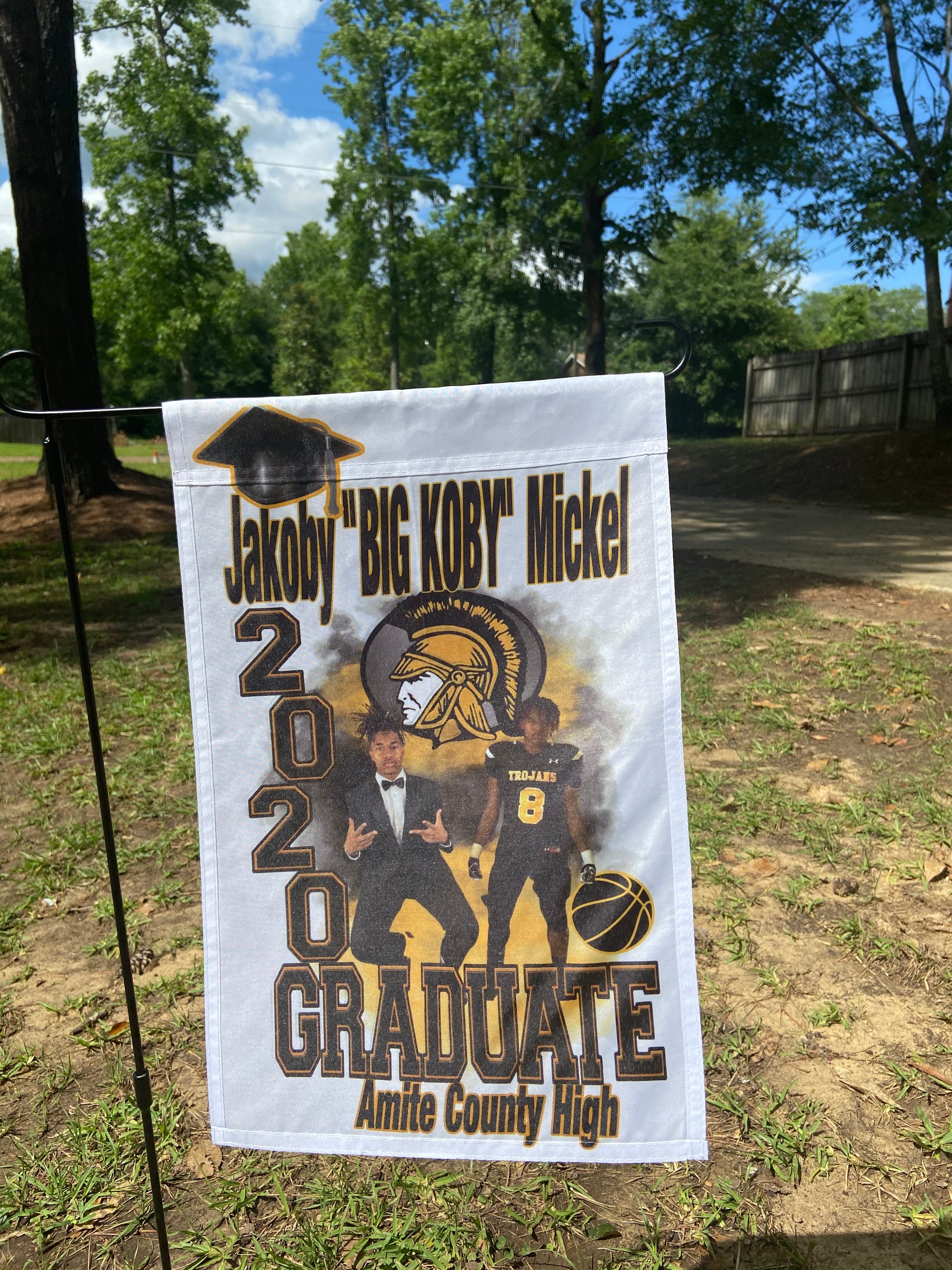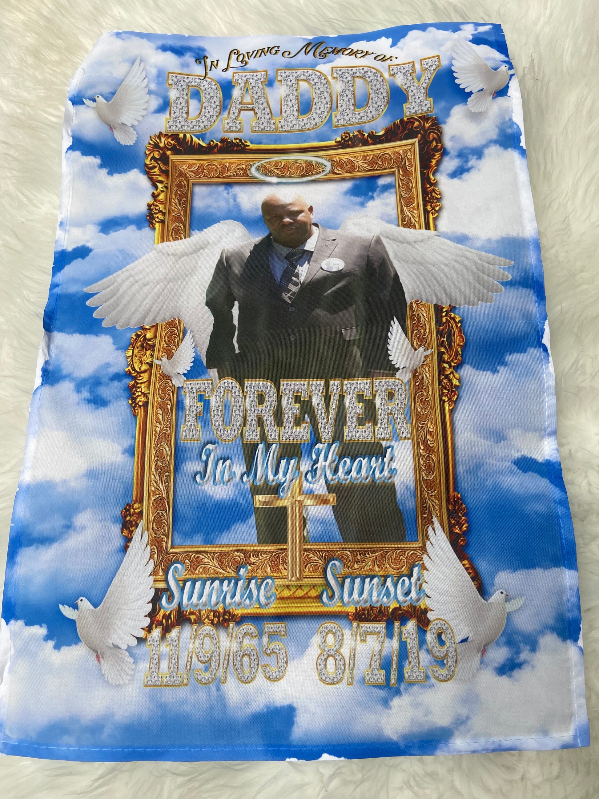 Garden flags are 12x18 made of thin polyester material. Perfect for gardens, front yards, grave sights and much more. Any design, color, or occasion. Pole not included. Thick material double sided.