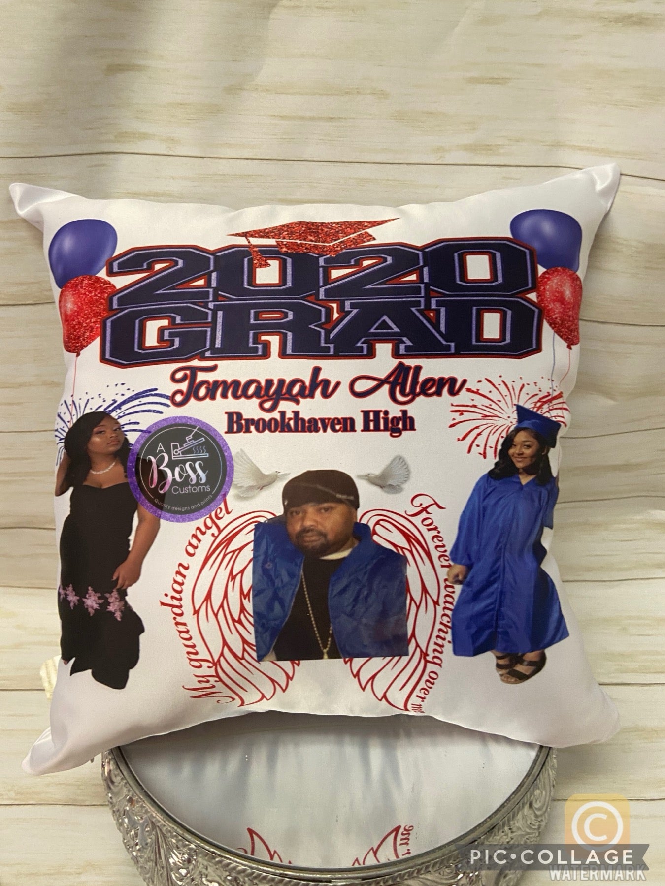 Personalize memorial pillows for any occasion. Comes in sizes 15x15 or 16x16 depending on the manufacturer. Any design or color of your choice. All sales are final. No refunds or exchanges.