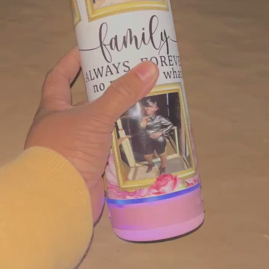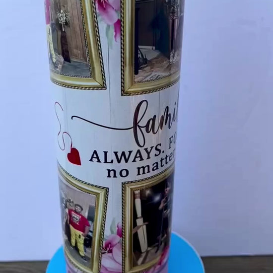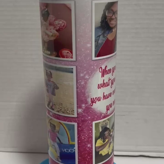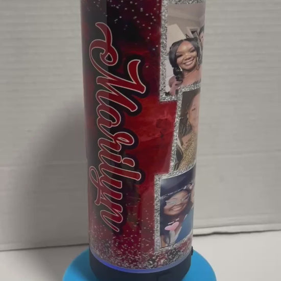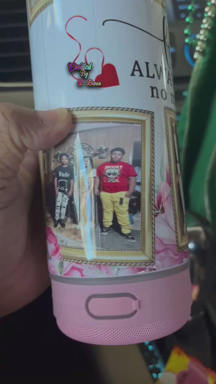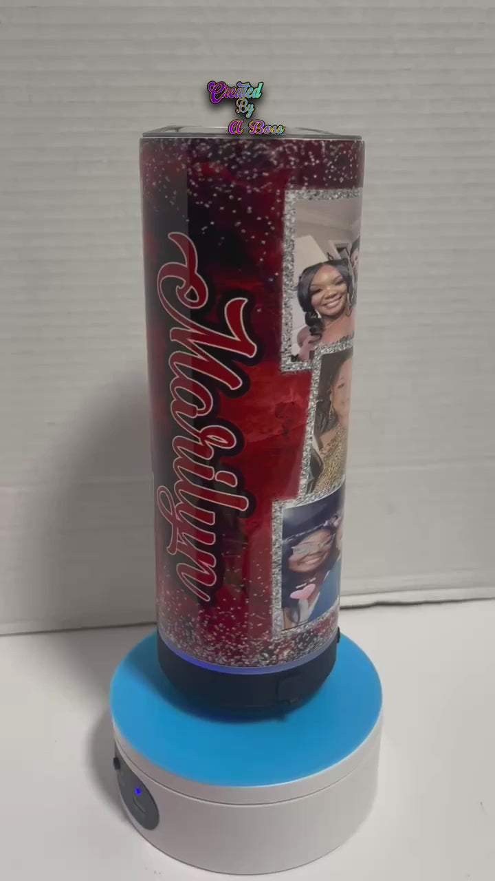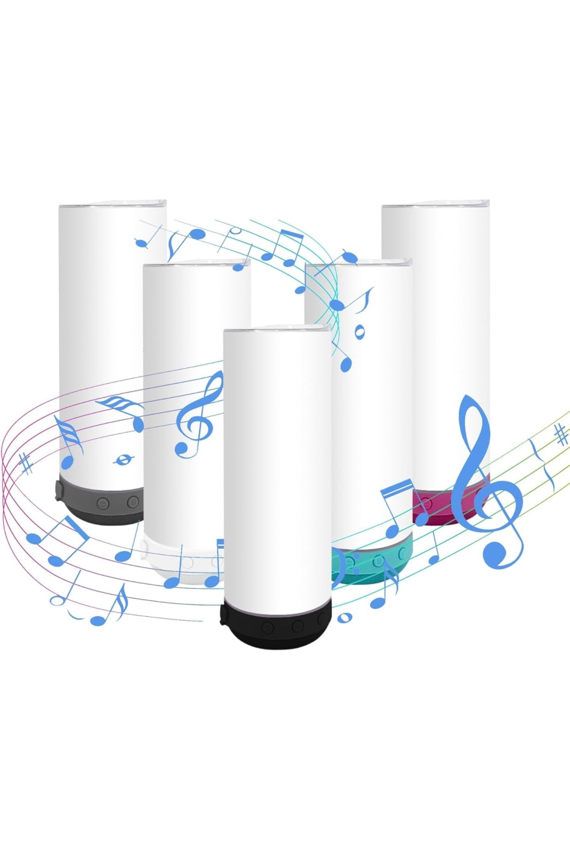 20oz skinny tumbler with a built-in wireless speaker that can easily connect to your smartphone or other devices via bluetooth. Any design or colors. All sales are final. No refunds.