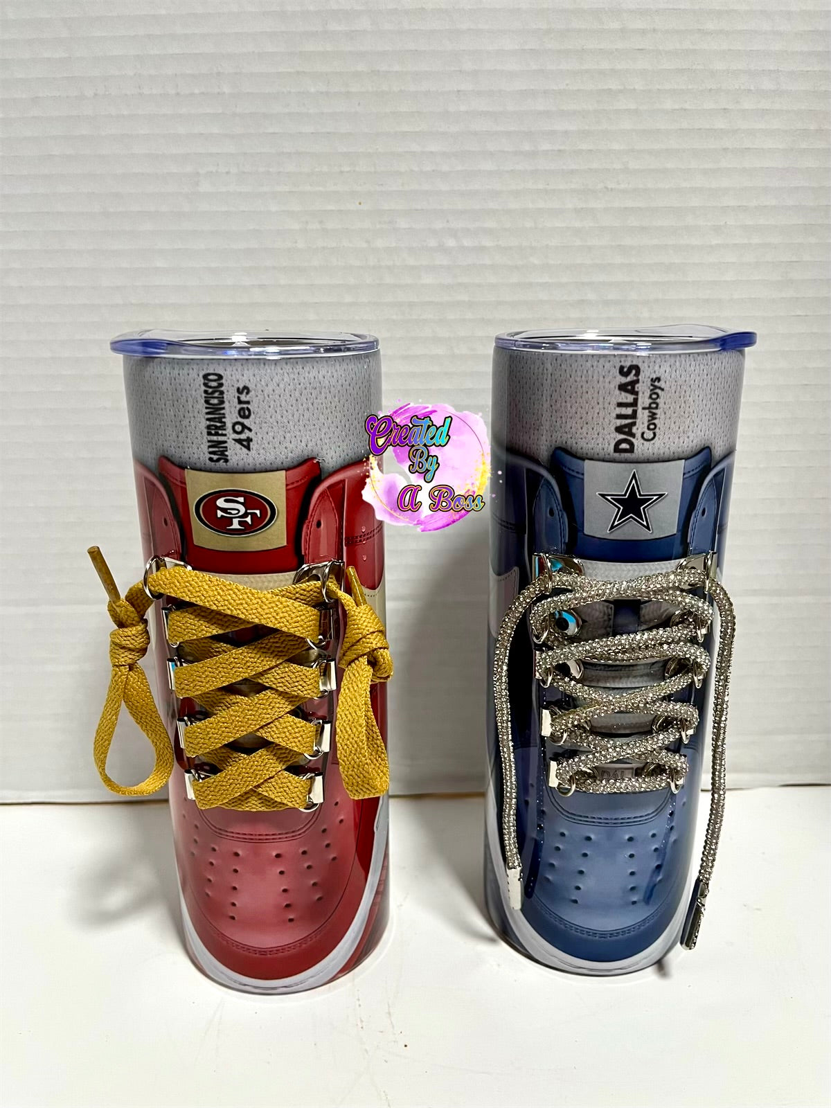 20 oz Nike themed tumbler. Can be design with NFl, NBA, or just the Nike Design itself. All NFL and NBA teams are available.