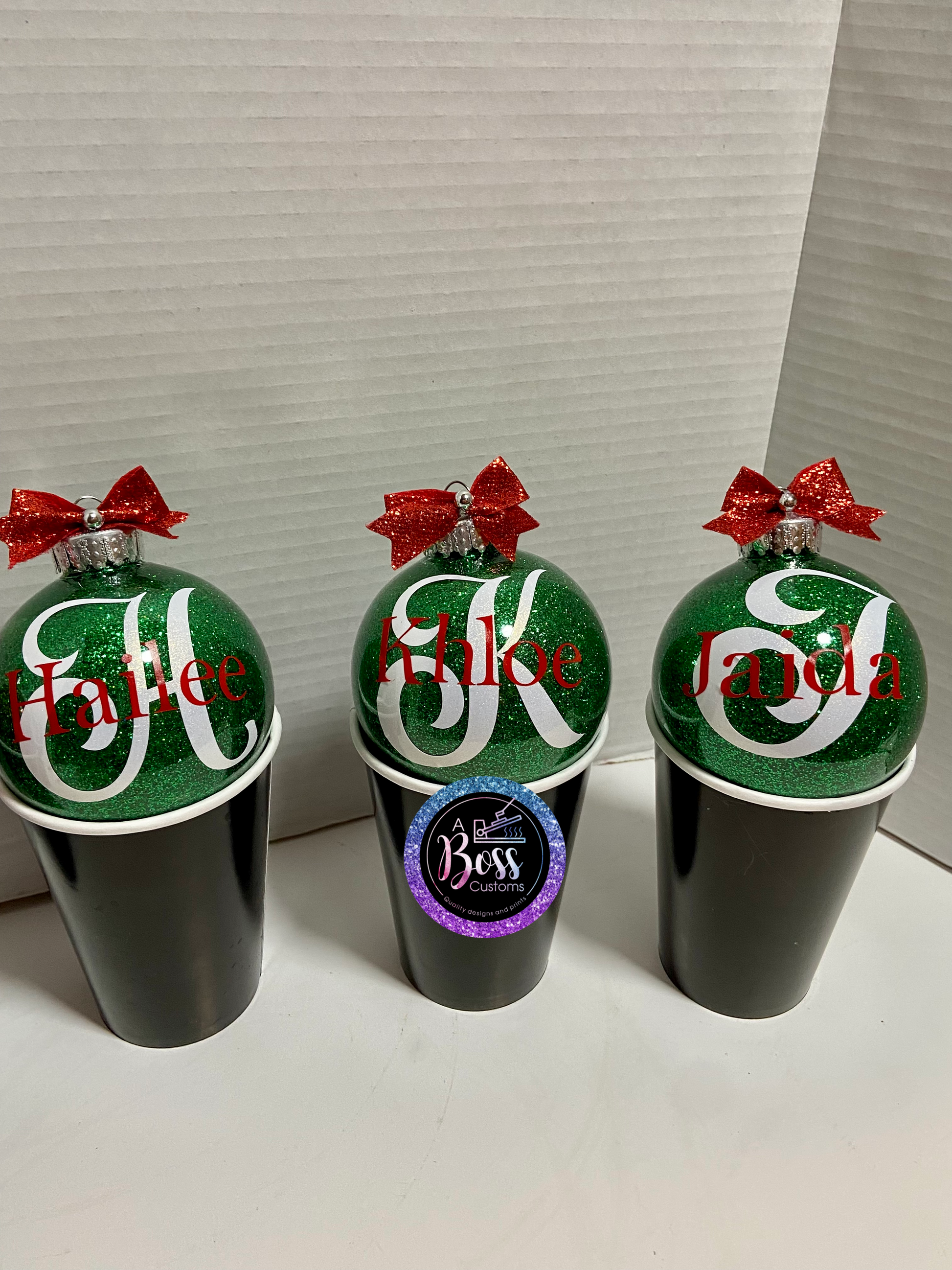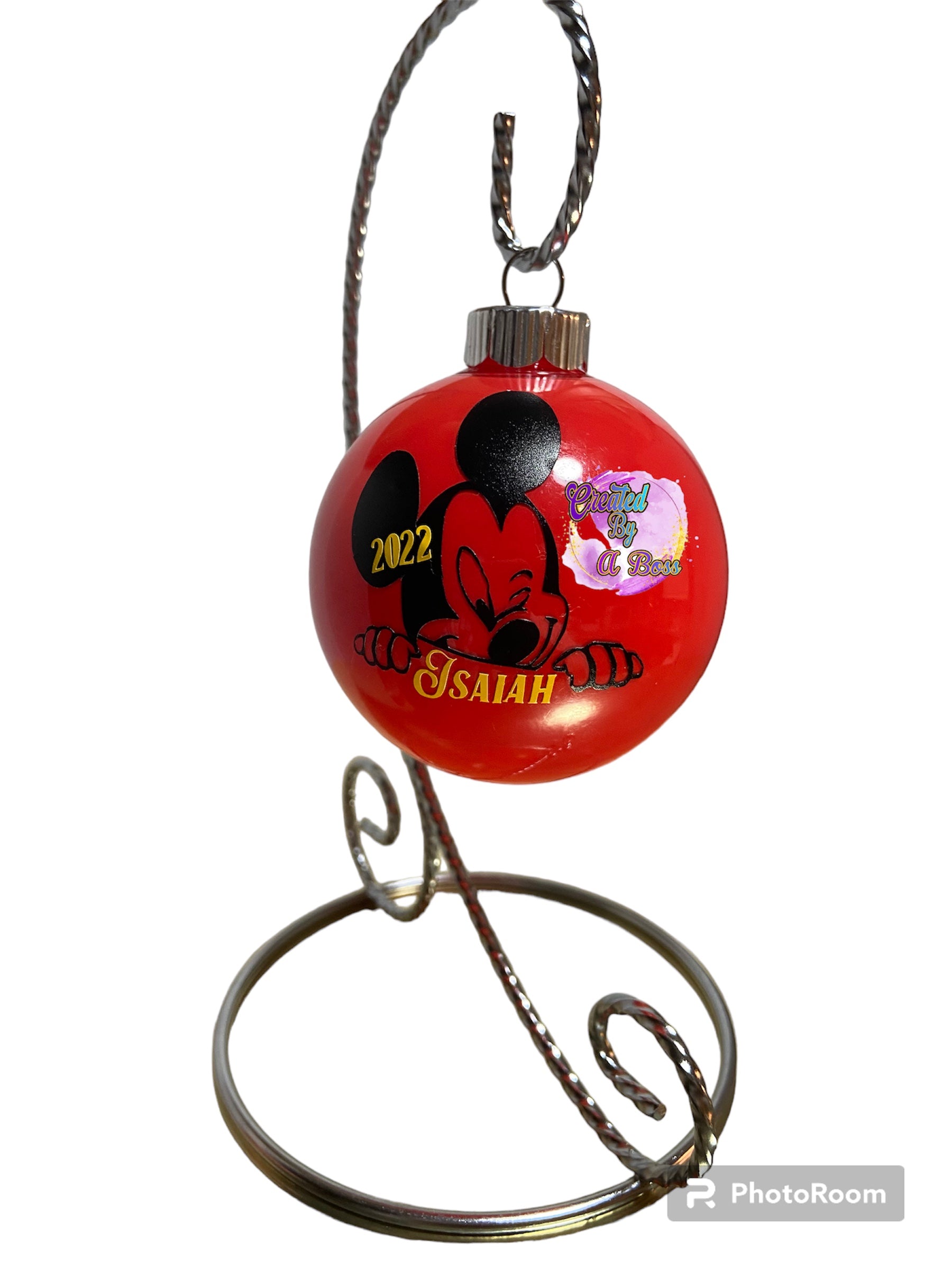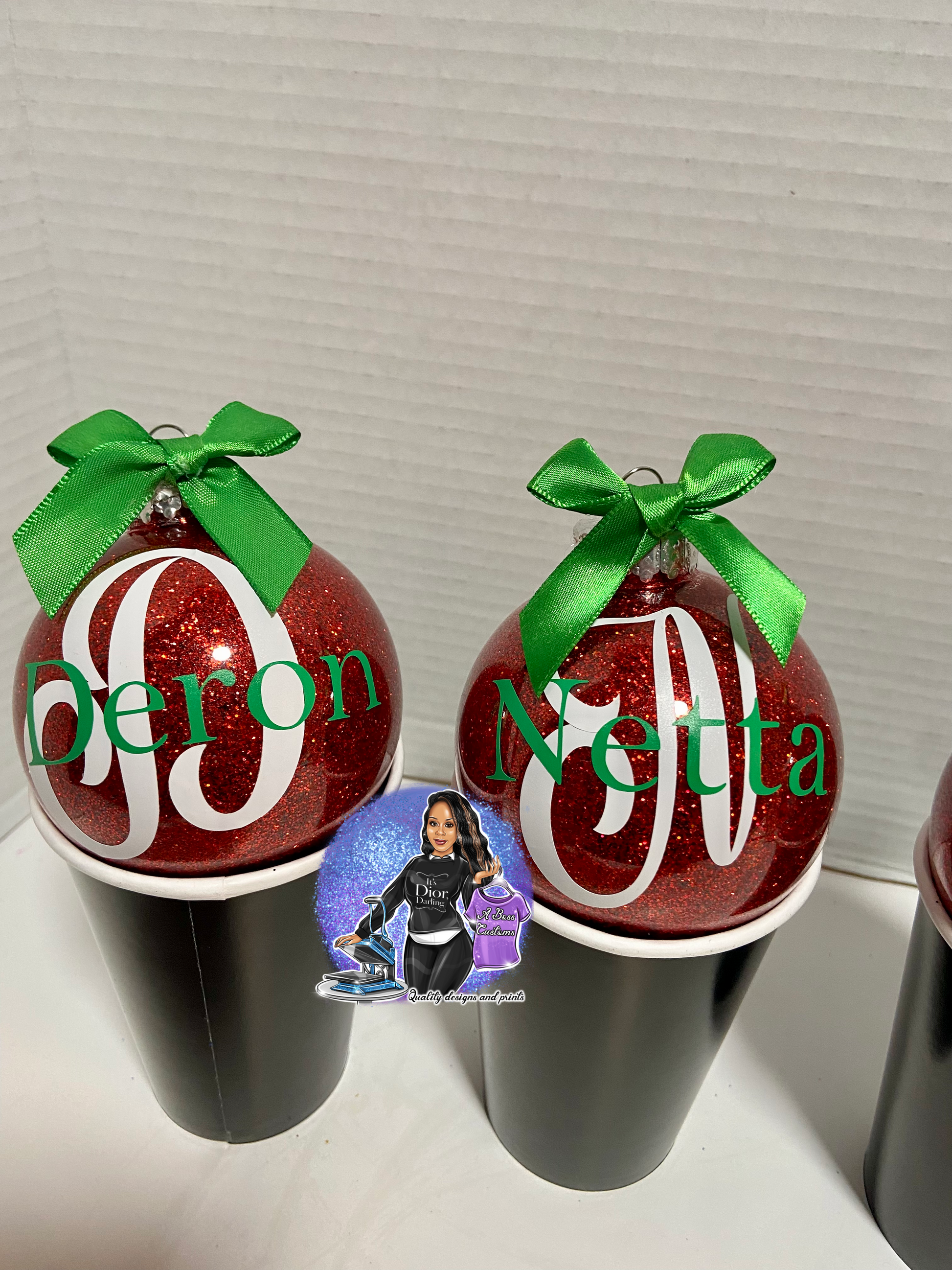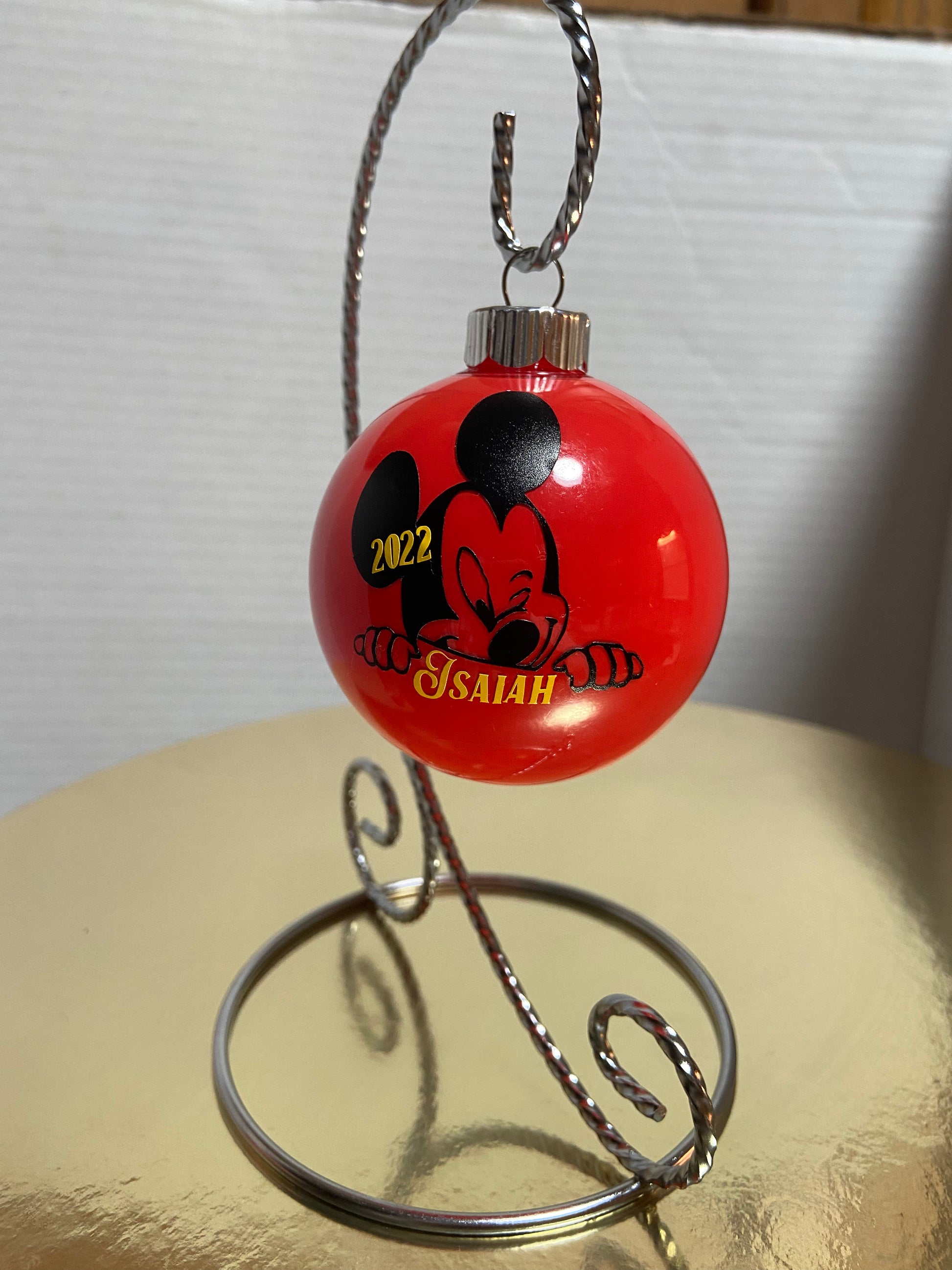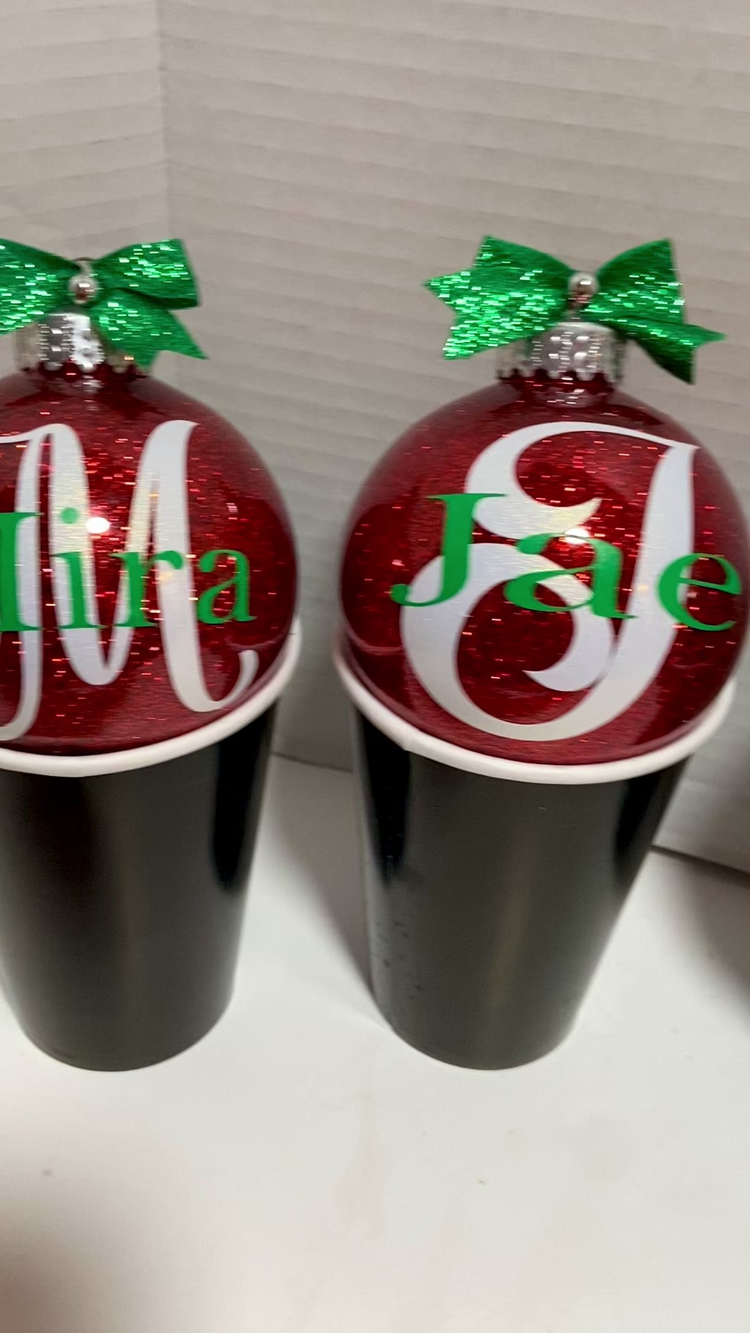 Plastic ornaments can be personalized with name, initial, character, and or bow. Additional fees may apply depending on the design, colors Etc.