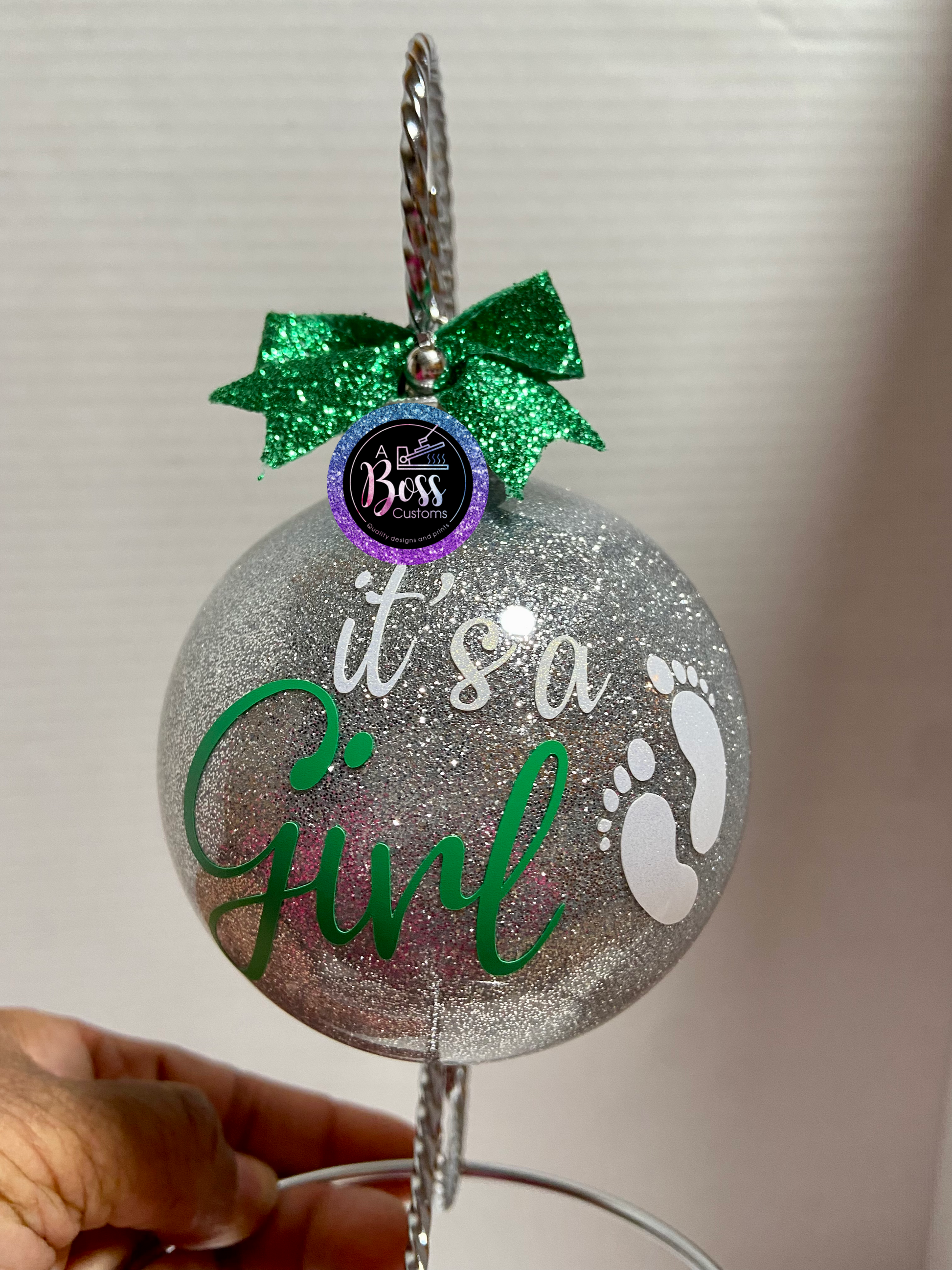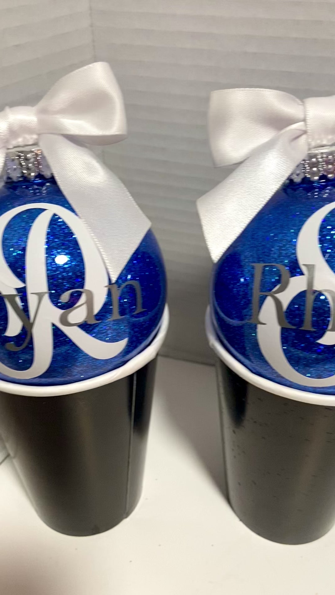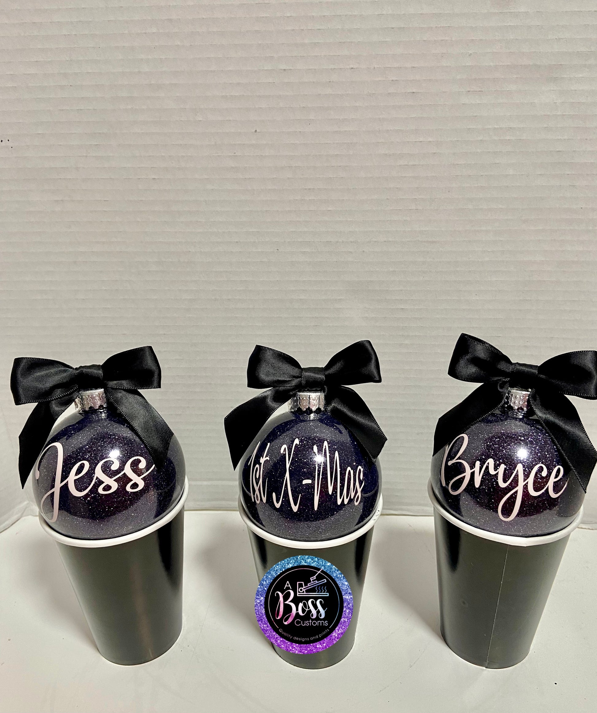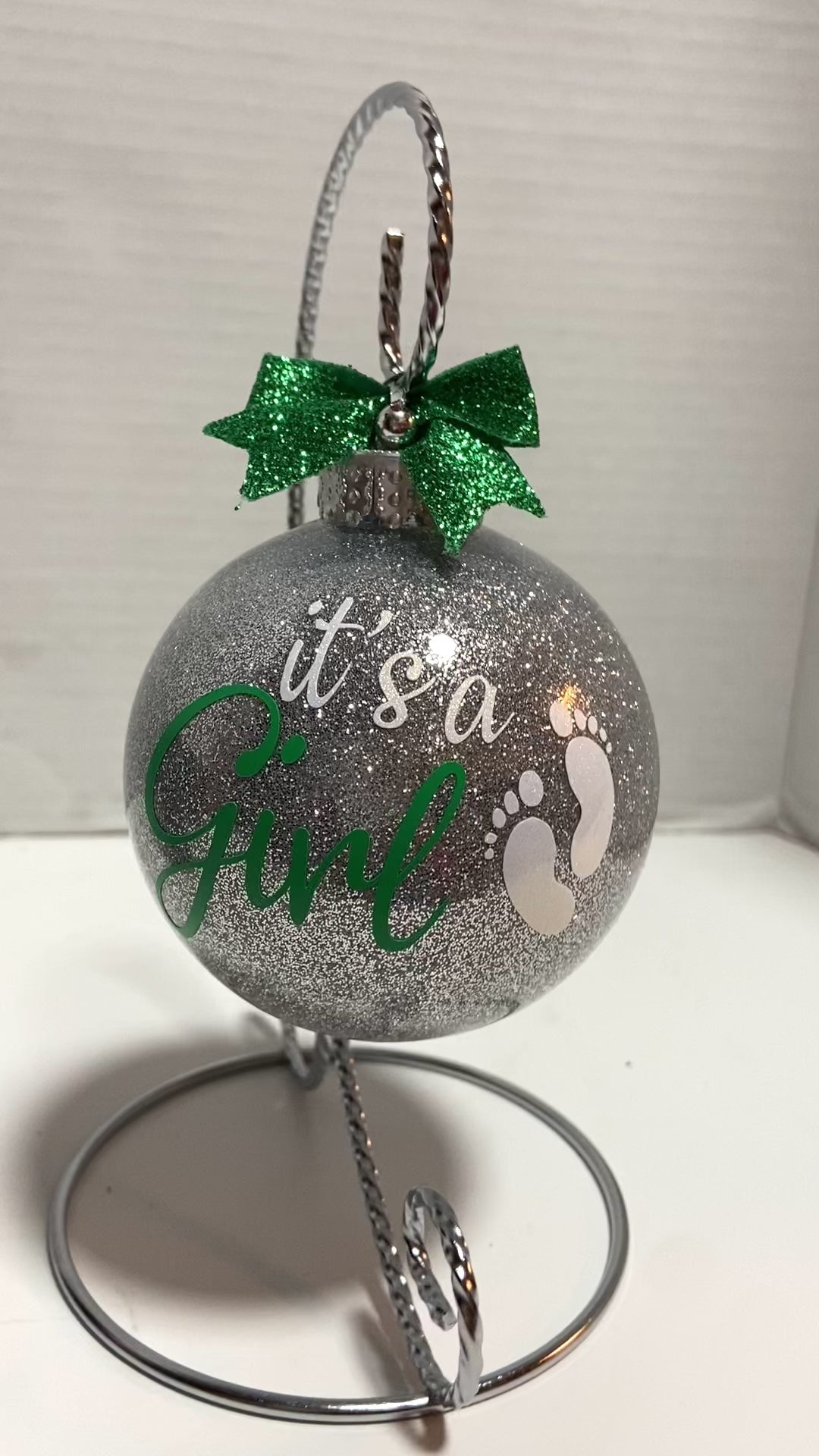Plastic ornaments can be personalized with name, initial, character, and or bow. Additional fees may apply depending on the design, colors Etc.